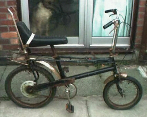 My Boot Sale Special Oh dear. I couldn`t leave it there looking so sad and dejected. No-one else was crazy enough to pay the man the extortionate price he wanted for it so I made the wife a promise I knew I`d never keep in order for her not to disown me if I bought it. Nothing worked on it, I had to carry it to my car because the back wheel was seized solid. The gear shifter was held in place by coat hanger wire. The handlebars were bent, the seat was a spiders holiday home and it shaked, rattled but didnt roll all the way to the car park. The only consolation was it didnt matter if I dropped it. It went in the boot of the car no problem - or at least half of it did, the other half hung out and flapped about like a shirt lap in the breeze. Even the dog shook her head as I brought my latest project home.