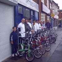 Pictured centre is Abdul who was employed by Raleigh for 27 years. Behind is where he was trained to weld Chopper frames and make seats. The building, like nearly all of the others, is now completely gone. |